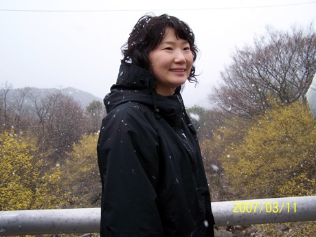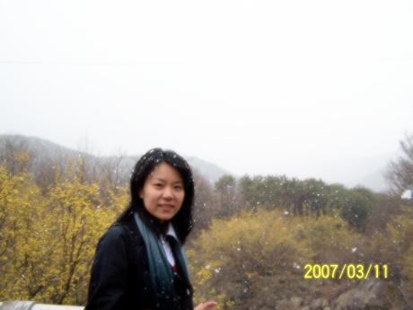 함박눈이 내리고 있었다..노오란 산수유 꽃위에.. 강아지언니..