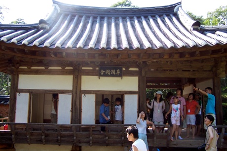 바람 한점 없는 더운 날씨였지만 정자에 서니 약간은 시원한 느낌이 드는 것 같았다. 초간정을 보고 우리는 계곡 사이를 이어주는 구름다리를 지나 다시 버스로 향했다.