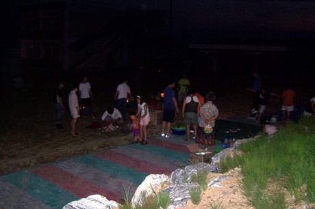 고기 먹는 중간에 후발대로 출발하신 몇 분들이 더 도착하였고, 모두 삼겹살과 약간의 음주를 마시며 이야기 꽃을 피웠다. 밤 하늘에는 총총히 별들이 비추고 달무리진 약간 부족한 보름달이 우리를 내려 보고 있었다.