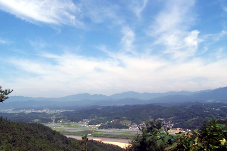장안사에서 멀리 보이는 마을들과 하늘이 어우러진 모습이 참 예뻤다.