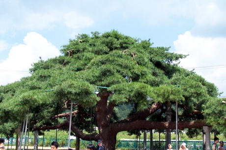 석송령 사진.. 너무 옆으로 퍼져서 곳곳에 지지대가 함께 한다..